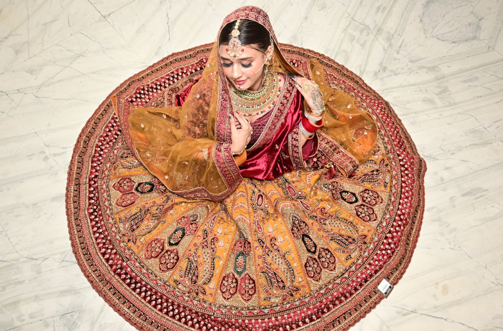 Look for fabrics and embellishments that suit the venue and season: silks and brocades for grand indoor ceremonies, georgette or chiffon with light zari for outdoor or daytime events. Consider your bridal palette (traditional reds and maroons or modern pastels), the level of embroidery you’re comfortable carrying, and your body type—opt for heavier fall and pleats if you love a structured drape, or lighter weaves for easy movement.