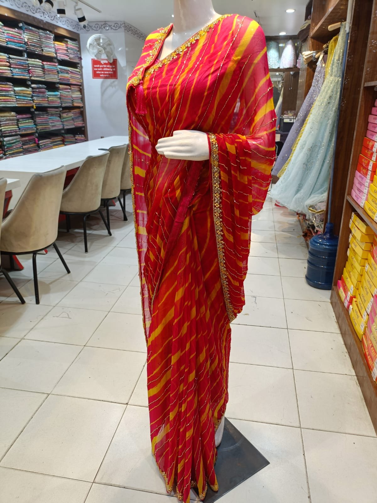 Look for fabrics and embellishments that suit the venue and season: silks and brocades for grand indoor ceremonies, georgette or chiffon with light zari for outdoor or daytime events. Consider your bridal palette (traditional reds and maroons or modern pastels), the level of embroidery you’re comfortable carrying, and your body type—opt for heavier fall and pleats if you love a structured drape, or lighter weaves for easy movement.